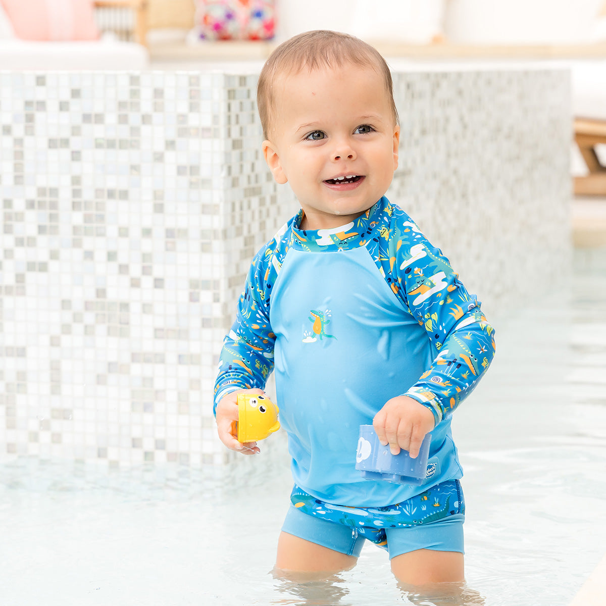 Choose the Long Sleeve Rash Vest for lightweight, cooling coverage that coordinates with your favourite Splash About swim nappies and swim vest.