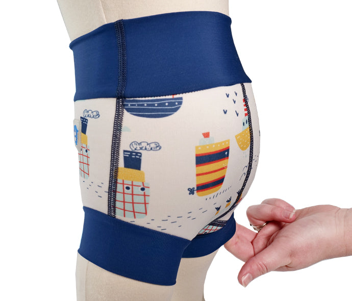 Then, continue as above to put the Happy Nappy™ part on, remembering, the action is much like putting on a pair of tights (please refer to steps 1 to 4 of Happy Nappy™ and Happy Nappy Duo™ instructions)