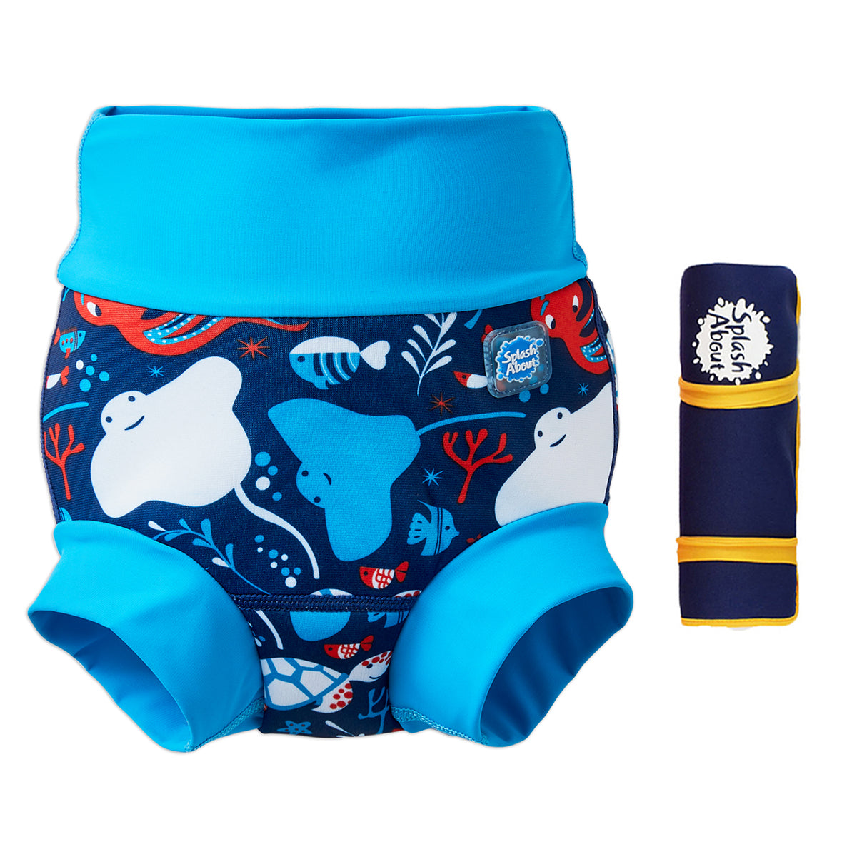 The Happy Nappy™ swim nappy pant is the only way to ensure your baby is protected against leaks whilst in the swimming pool. This innovative reusable swim nappy is made from 1mm thick neoprene which is designed to contour the shape of your baby’s bottom, so that there is no gaping that could compromise leak protection. Specialist ribs form a snug seal against the baby’s waist and thighs, ensuring any poo stays within the nappy.
