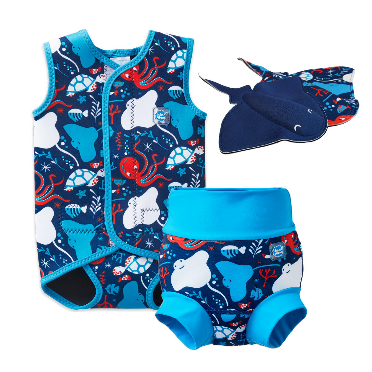 The Baby Wrap wetsuit is ideal for playful babies and toddlers eager to get into the pool! Made from 2mm thick neoprene, the Baby Wrap keeps your baby’s core toasty while leaving their arms and legs free to kick, splash, and feel the water around them.
